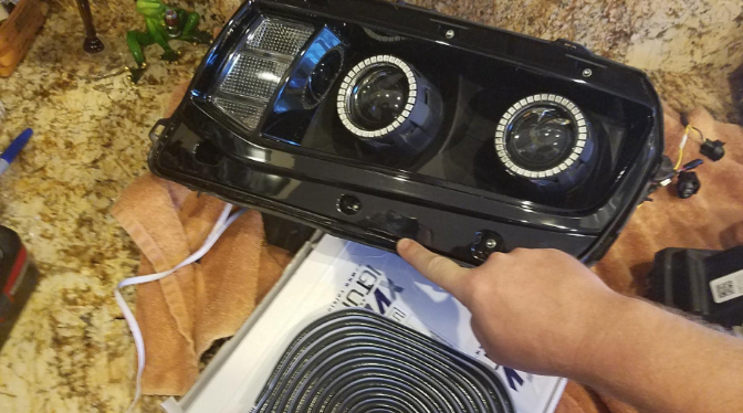 1. Mount the angel eye into the high light beam. Eliminate the extra part of the angel eye to fit the housing.